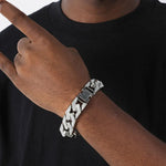 It’s also made of only the highest-quality materials, ensuring not merely endless shine, but the strength and resilience to last a lifetime. Fit for the boardroom and casual tees alike, this geometric diamond bracelet for him belongs in any outfit. The precision design and sleek look truly make it a statement piece, offering a midpoint between a fresh, up-to-the-minute design and the timeless make of a far-gone era. Ultimately, this bracelet is for the man who values luxury with minuscule detail and meticulous craftsmanship, and intends that he can easily wear it every day.