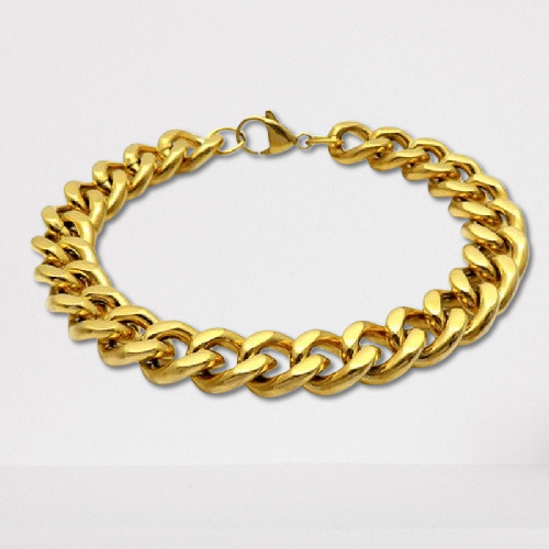 Command attention and exude refinement with our 11mm Gold Cuban Link Bracelet, a masterpiece crafted from gleaming 18k solid gold.