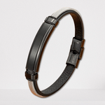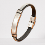Add a strong statement to your accessory game with our Two-Tier Steel Design Leather Bracelet.